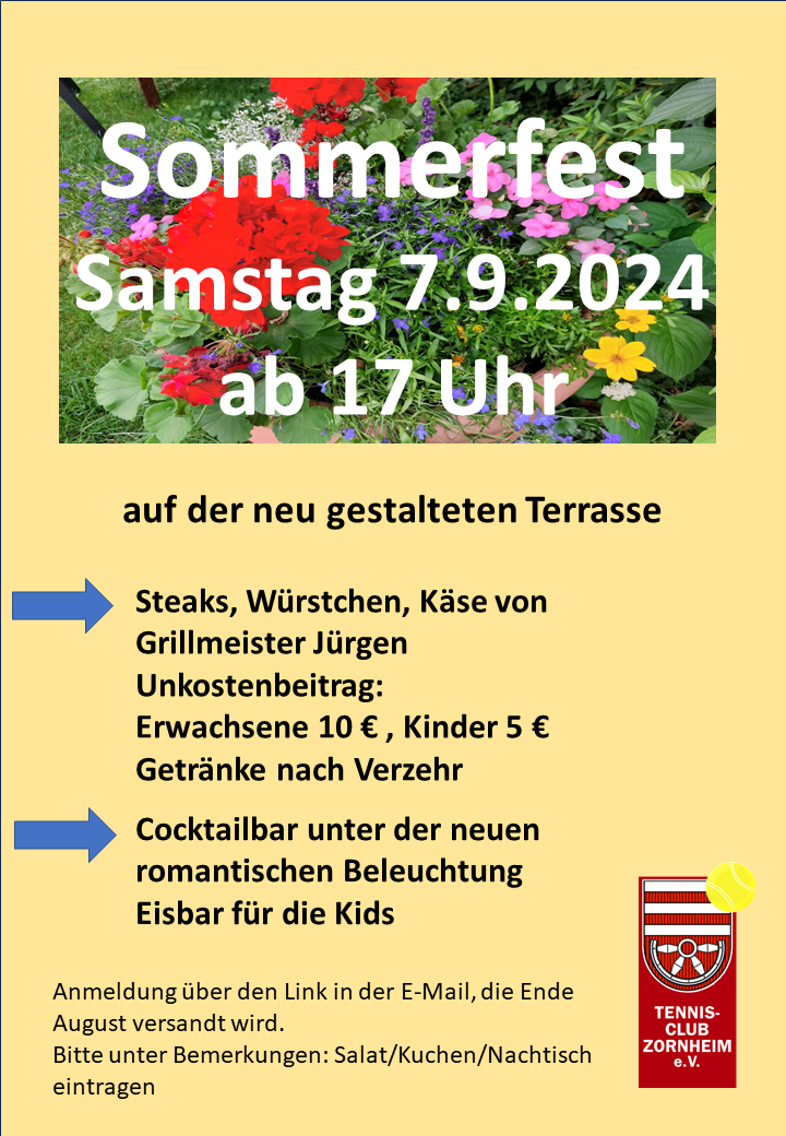 Herzliche eingeladen sind alle Mitglieder und Freunde des TC Zornheim.